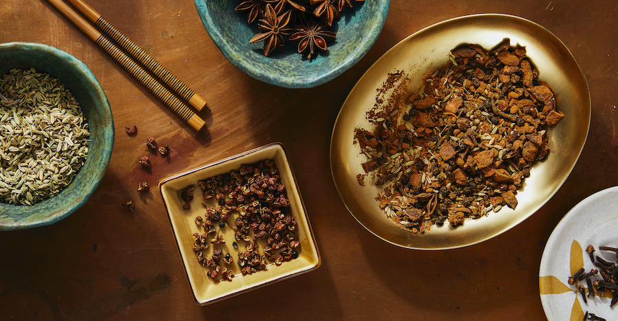 - In a medium saucepan over low heat, melt the dark chocolate chips with the butter. Add the granulated sugar, Valrhona cocoa powder, salt, whole milk, cornstarch, and Chinese Five Spice. Whisk well to combine.