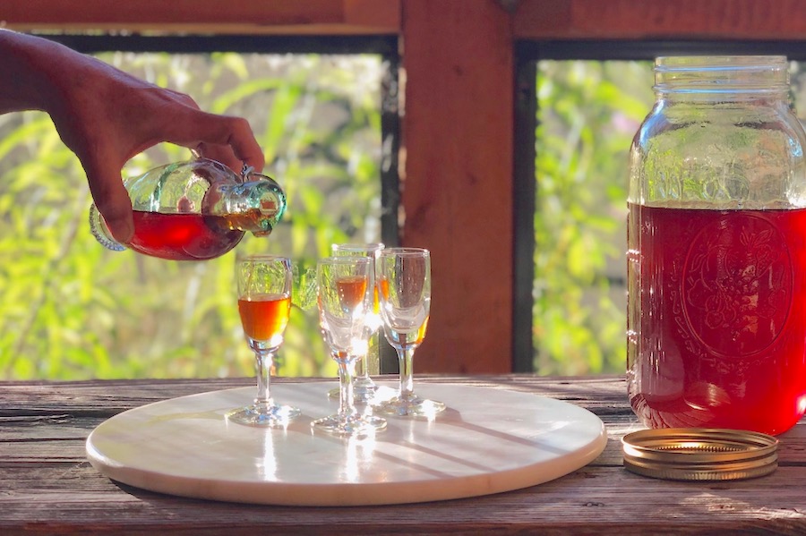 Better than store-bought, this liqueur boasts a caramel flavor that is embellished with toasted spices, almonds and apricots. Not for immediate gratification, this process takes a month to complete but the outcome is well worth it. Toasting the spices and caramelizing the sugar make for a sweet, rich flavor that can’t be beat. Enjoy it in your favorite cocktails and toddies for over the top flavor. Whether you make a bottle to stock your bar or divvy it up for gifting, it is a fun liqueur to make.