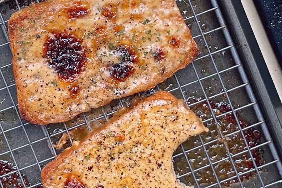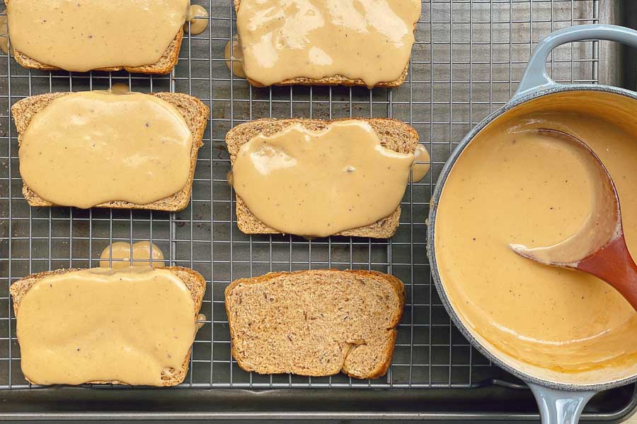 - Arrange the toast on a rack over a sheet pan and set aside.