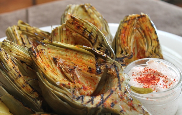 Rooster Grilled Artichokes with Spicy Garlic Mayonaise